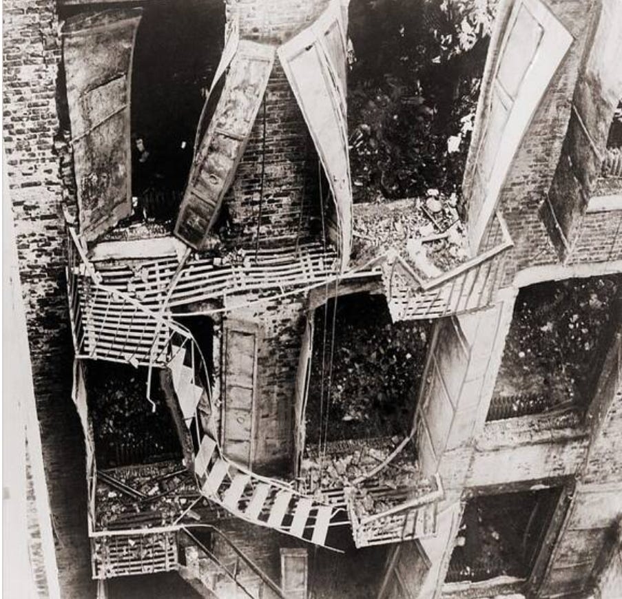 The weightbearing capacity of that single fire escape was insufficient to allow the number of people on that day to make it safely to the ground. It collapsed while in use. Even before it fell, others had died or were injured jumping from the lower ladder, which did not extend downwards far enough.